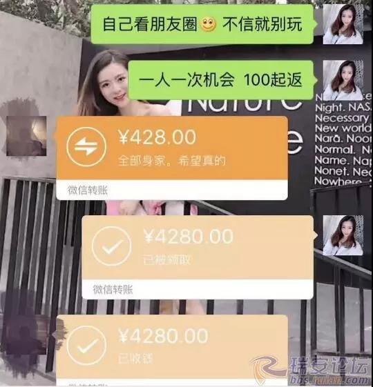 " 美女 " 們無(wú)一例外都有一個(gè) " 富二代 " 男友,分個(gè)手動(dòng)不動(dòng)就甩來(lái) 30 萬(wàn)、50 萬(wàn)。而美女本身就是高富美,誰(shuí)稀罕他的臭錢,只要轉(zhuǎn)賬并備注 " 馬少輝是人渣 " 就能收到十倍返還。當(dāng)然也可能是 " 王少輝 "、" 孫少輝 "…… 隨便一個(gè)名字而已。
