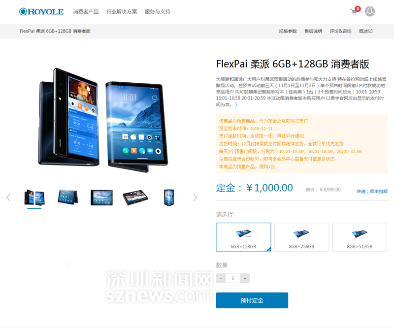 柔宇官網(wǎng)預(yù)售頁面截圖