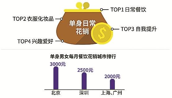 抖音上“成都小甜甜:帶我吃飯就好”,打動無數(shù)單身男女心。然而數(shù)據(jù)顯示,單身人群每月(除房租房貸外)的生活花費占比最多的就是日常餐飲,占比達40.67%。從地域來看,北京單身每月均餐飲花銷為3000左右,深圳為2500元,而上海、廣州則在2000元??梢?,“吃飯”已經(jīng)單身男女生活的最大開支之一,想要實現(xiàn)“帶我吃飯就好”并非是一件容易的事情。而除餐飲花銷外,單身男女其他花銷分別為購置衣服化妝品、自我提升費用、興趣愛好。