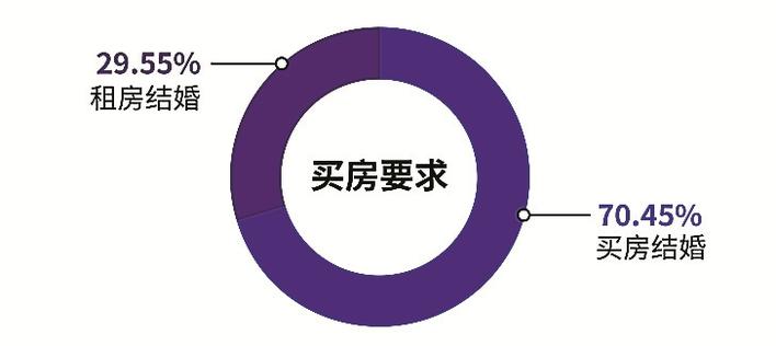 房子始終是婚戀避不開的話題。數(shù)據(jù)顯示,70.45%單身人群認為結(jié)婚需要買房。其中,對于一定要買房結(jié)婚的觀點,男性認同比例高于女性。而對于租房結(jié)婚,僅三成單身男女接受租房結(jié)婚。