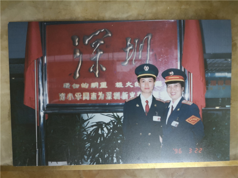 深圳火車(chē)站員工在鄧小平題字前留念