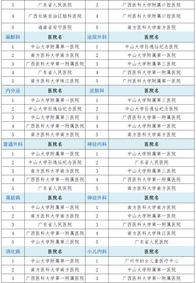 廣州醫(yī)科大學附屬第一醫(yī)院的呼吸科、中山大學中山眼科中心的眼科,到今年已是連續(xù)9年均位列??瓢袷?“江湖地位”無人能撼。