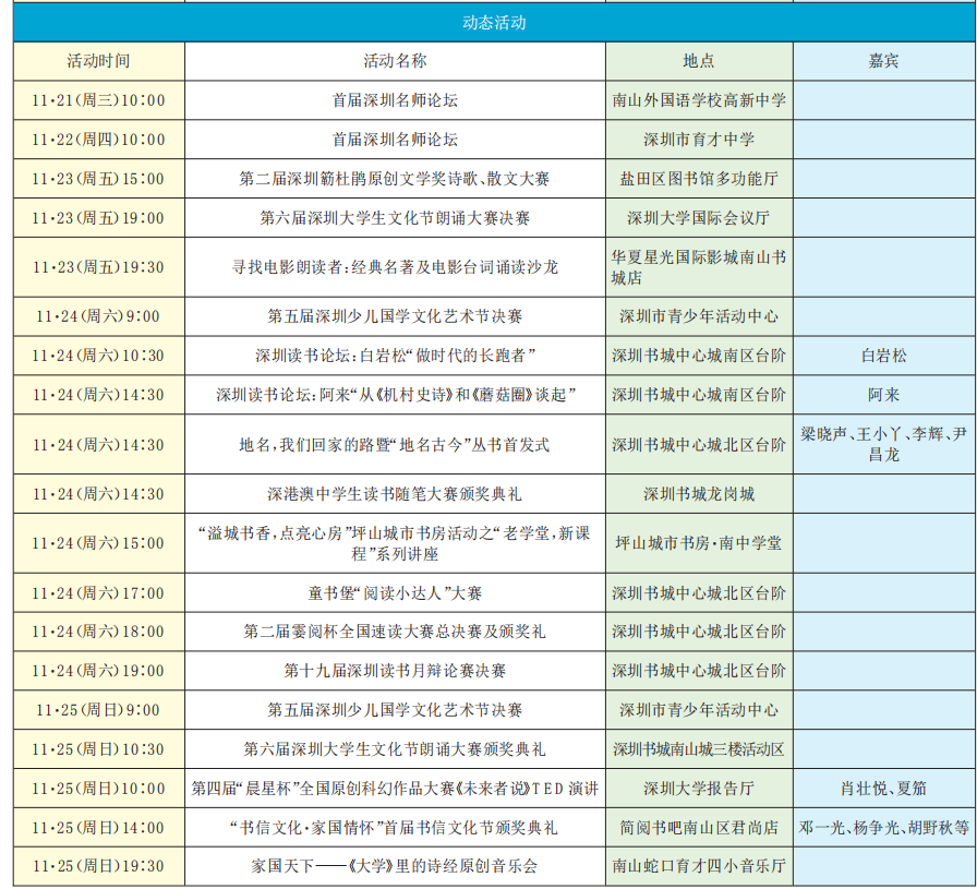 第十九屆深圳讀書月精彩活動(dòng)預(yù)告(11·19-11·25)