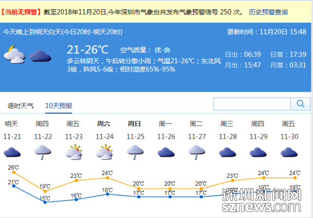 市氣象局發(fā)布未來十天天氣預報(數據更新于11月20日15時48分)