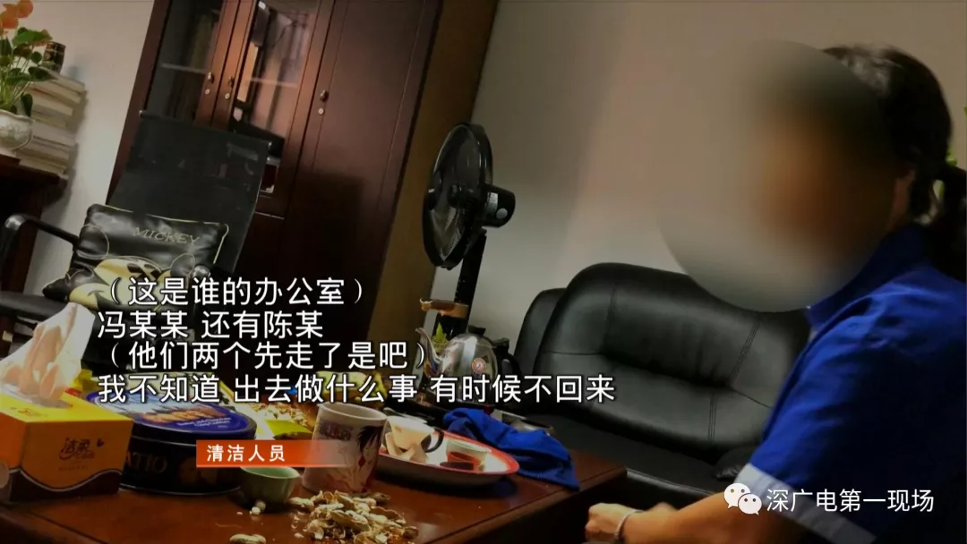 看到該單位工作作風(fēng)如此渙散,暗訪組成員繼續(xù)對另外一棟高層辦公樓展開暗訪檢查。下午4點03分,暗訪組成員剛進(jìn)入二樓——深圳市生活垃圾處理監(jiān)管中心辦公區(qū)域,就聽到有兩名男性工作人員招呼打掃衛(wèi)生的清潔人員幫忙整理辦公室,而這兩人背著包,徑直離開辦公大樓。