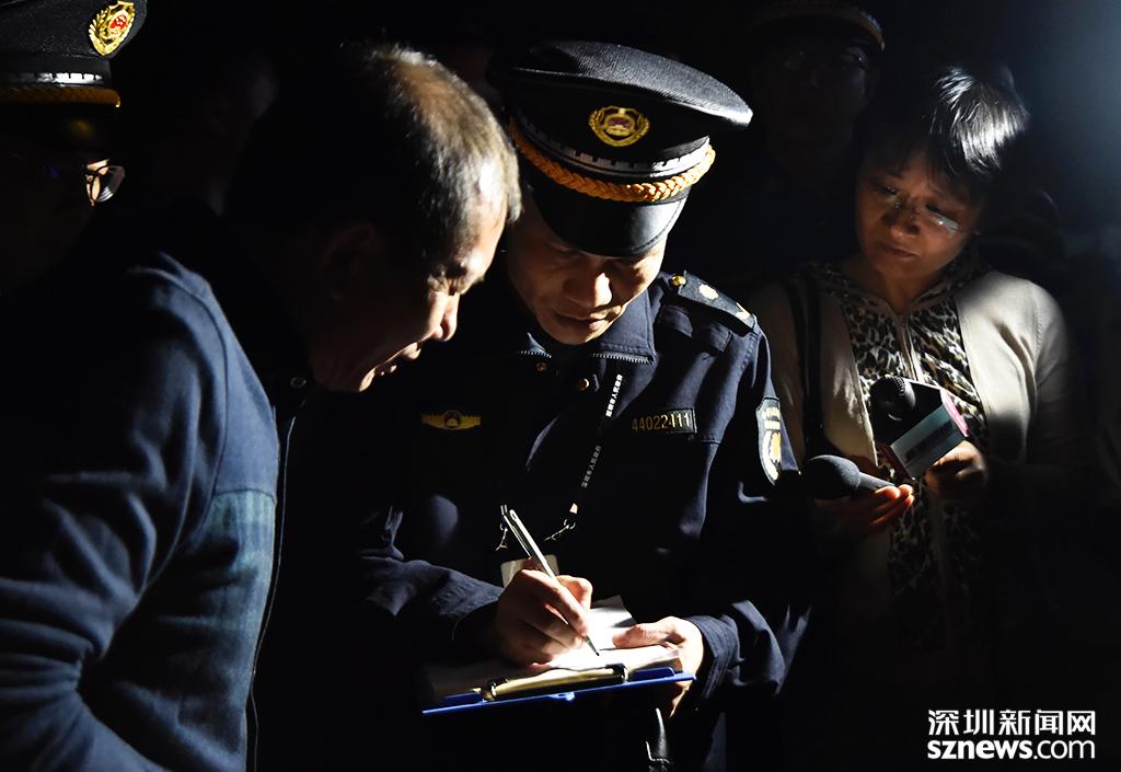 執(zhí)法人員依法現(xiàn)場(chǎng)對(duì)李先生開出處罰單據(jù)