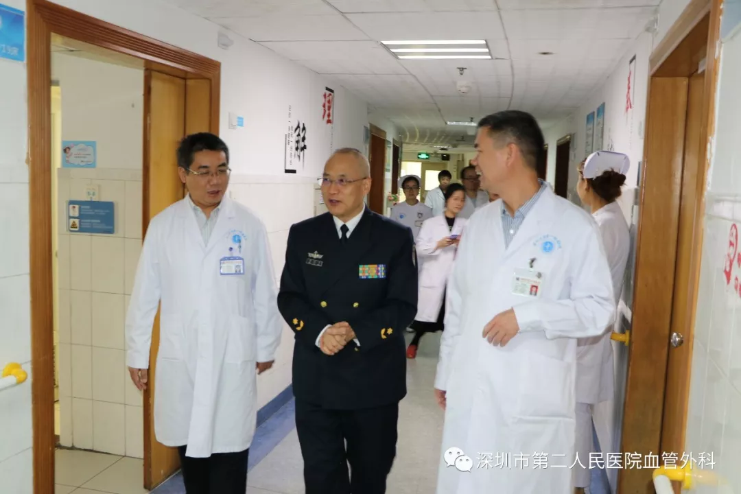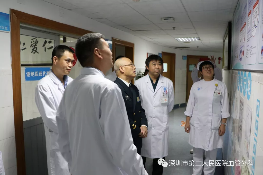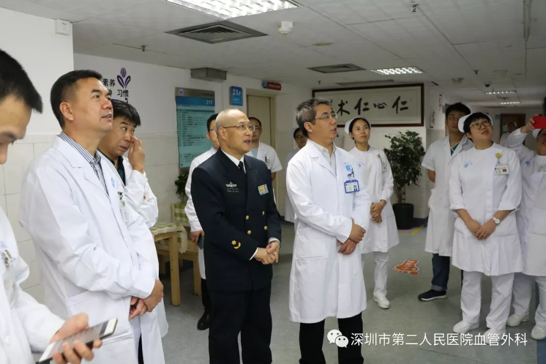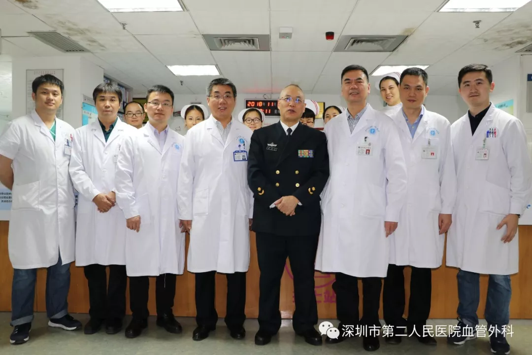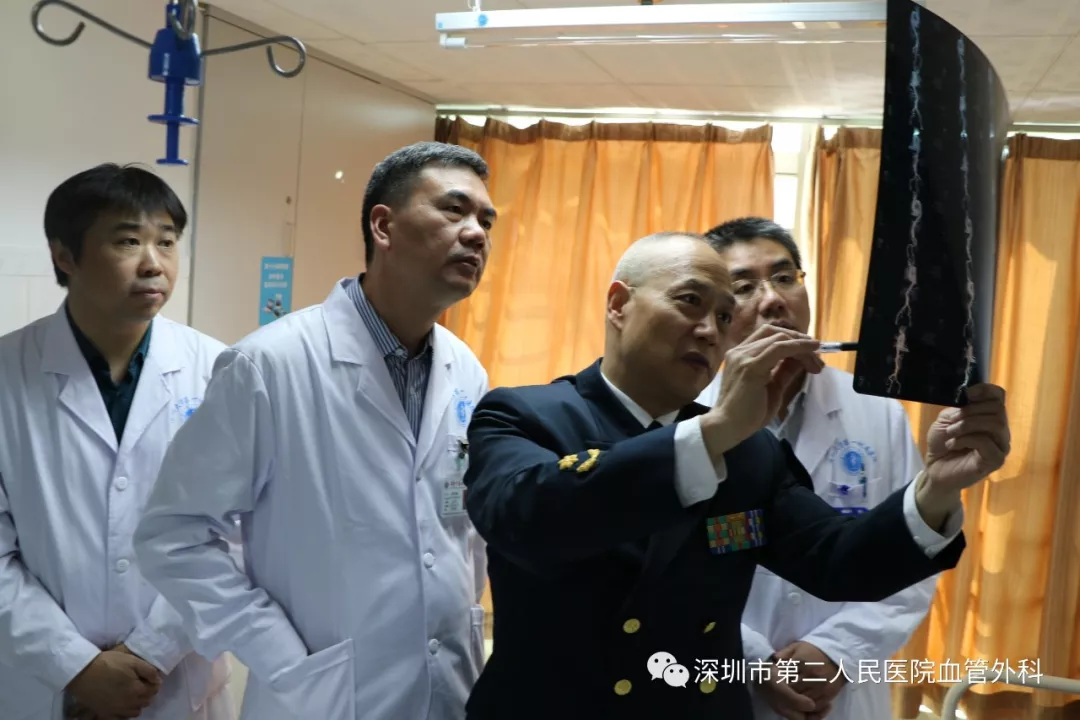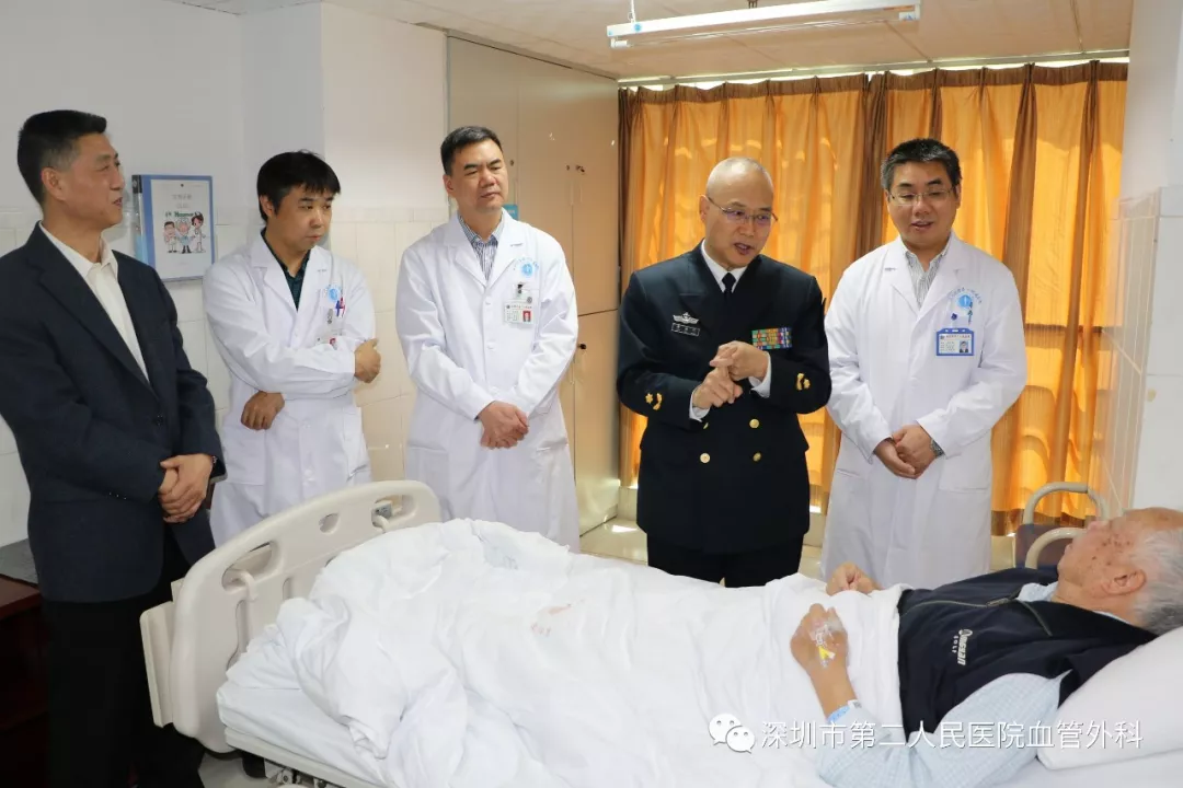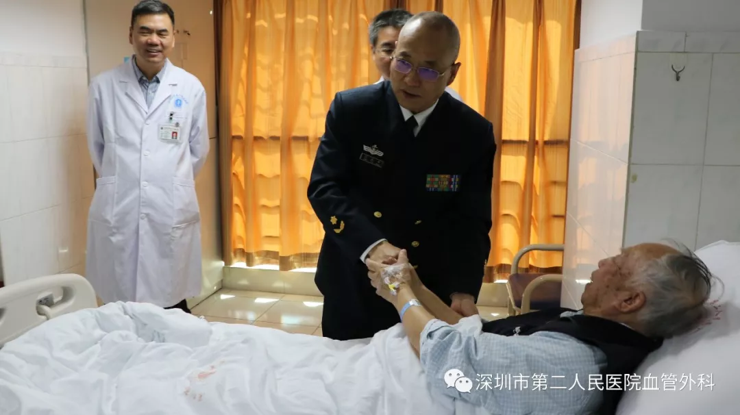 座談會(huì)結(jié)束后,景在平教授、趙永勝副院長(zhǎng)與科室醫(yī)護(hù)人員一起,進(jìn)行了床邊臨床教學(xué)查房,同時(shí)為一位腹主動(dòng)脈瘤疾病患者會(huì)診。患者是抗美援朝老英雄(享受軍級(jí)待遇),因發(fā)現(xiàn)腹主動(dòng)脈瘤(俗稱“不定時(shí)炸彈”)后,一直深受該疾病困擾,一度不愿意接受治療。經(jīng)過(guò)景在平教授詳細(xì)講解后豁然開(kāi)朗,同意接受治療,并要求在景在平教授團(tuán)隊(duì)及朱國(guó)獻(xiàn)主任團(tuán)隊(duì)下進(jìn)行手術(shù)治療。會(huì)診結(jié)束時(shí),老先生緊緊握住景在平教授的手,萬(wàn)分感激。