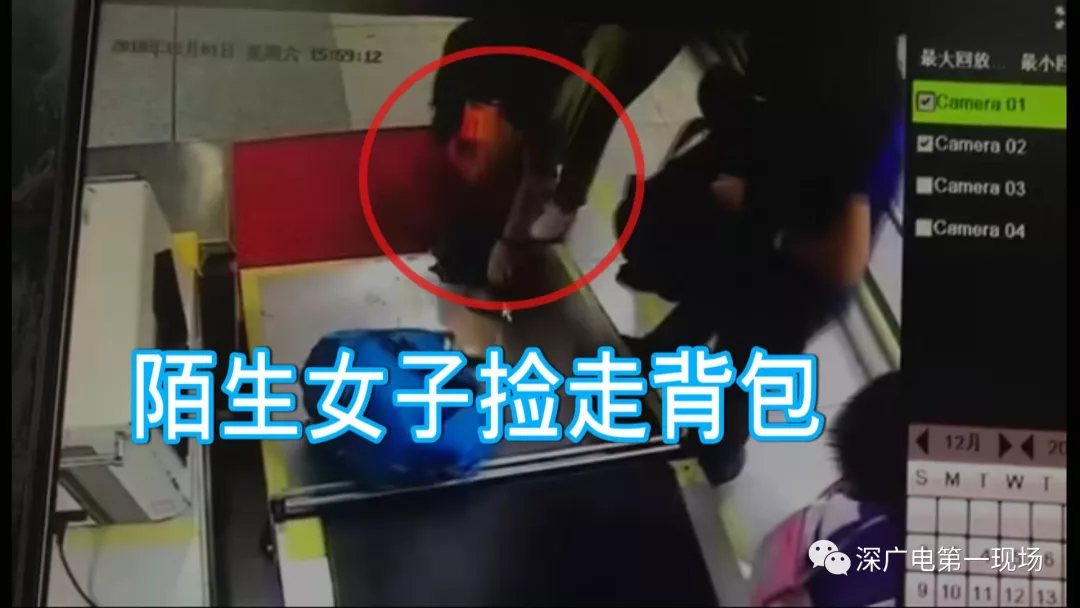 監(jiān)控顯示,肖女士身后有一名身穿駝色上衣的女子,在通過安檢之后,把自己的黑色背包拿走之后,并沒有立刻離開,而是站在肖女士藍(lán)色挎包旁,等待了10秒左右的時間,隨后就拿走了藍(lán)色挎包。