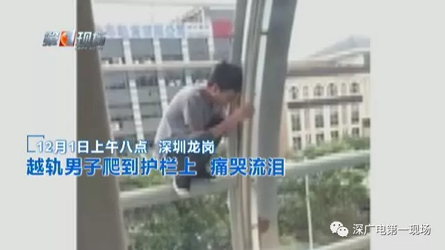 市民拍攝的畫面顯示,男子一度爬到護(hù)欄上,并蹲靠著護(hù)欄痛哭。