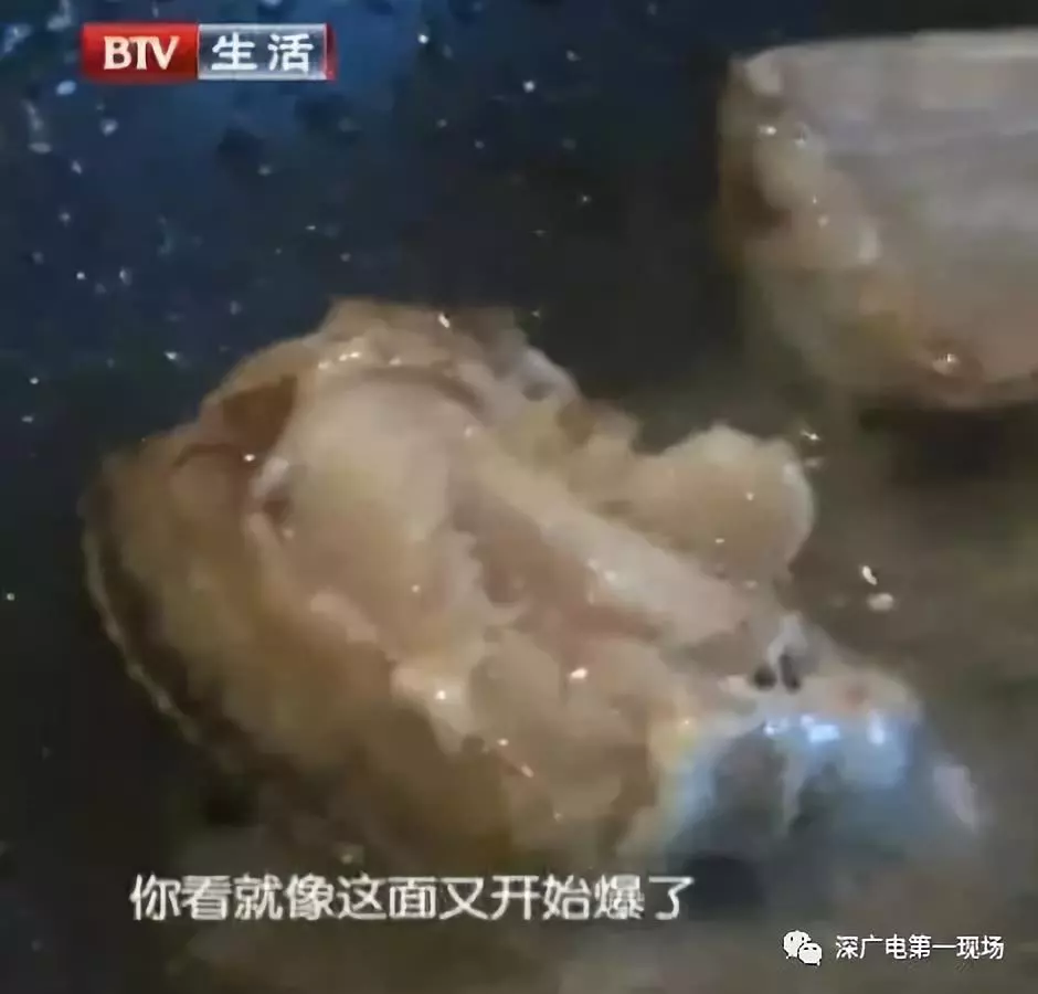 實驗結果顯示,未浸泡福爾馬林的帶魚,經過高溫油炸一切正常,并未產生任何爆裂“開花”的情況。然而,浸泡了福爾馬林的帶魚,在下鍋后不久,就爆裂“開花”。