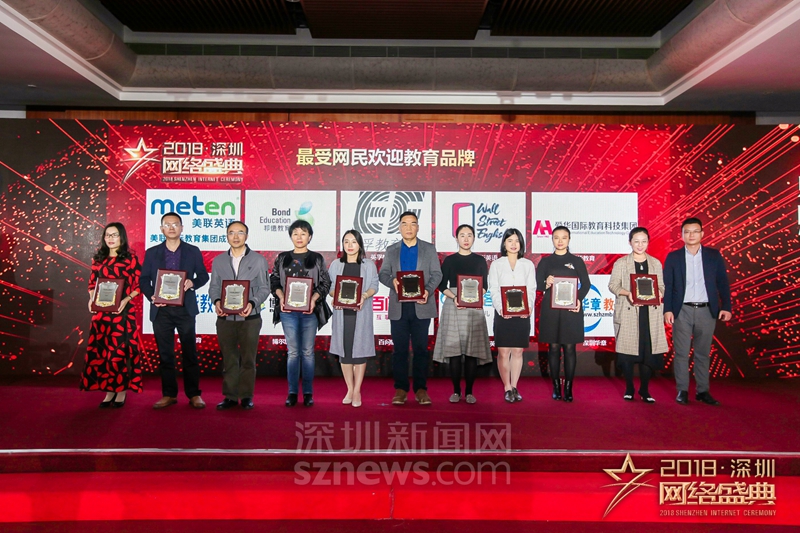 “十大行業(yè)最受網(wǎng)民歡迎品牌”獎項(xiàng)(教育)獲獎代表上臺領(lǐng)獎