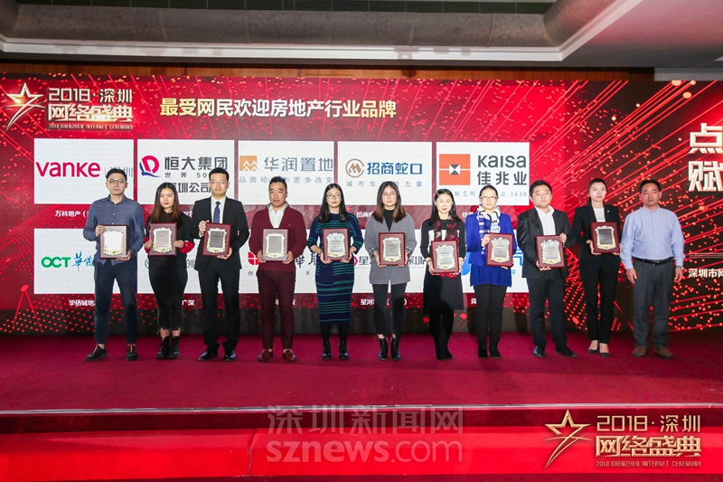 “十大行業(yè)最受網(wǎng)民歡迎品牌”獎項(xiàng)(地產(chǎn))獲獎代表上臺領(lǐng)獎