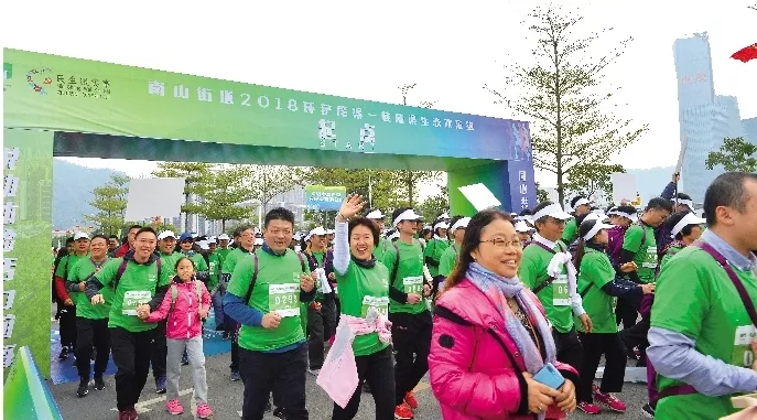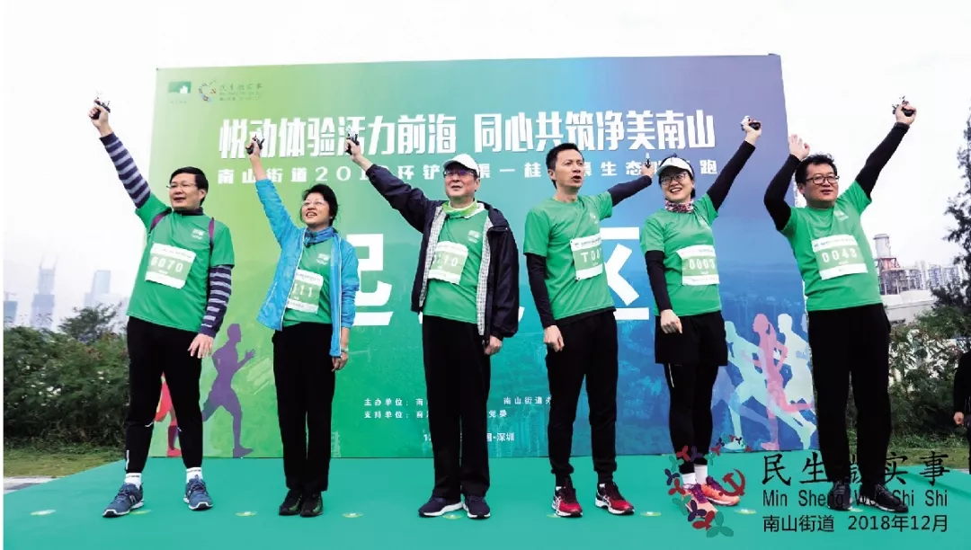 2018年12月31日下午3時,南山區(qū)政協(xié)主席陳軍,區(qū)委常委、政法委書記黃湘岳,區(qū)委常委、區(qū)委(政府)辦公室主任胡蕓,區(qū)人大常委會副主任、區(qū)總工會主席路玉萍,區(qū)人大常委會副主任鄧志榮,南山街道黨工委書記杜煒平,南山街道辦事處主任黃北球同時打響發(fā)令槍,南山街道2018環(huán)鏟灣渠-桂廟渠生態(tài)歡樂跑正式開跑,900余名跑步愛好者從前灣四路鏟灣渠河畔起跑,朝前海石快樂奔跑。