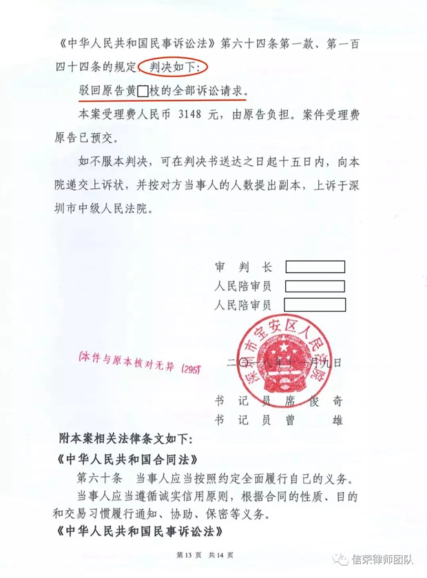 判決書復印件圖片(截圖由張茂榮律師團隊提供)