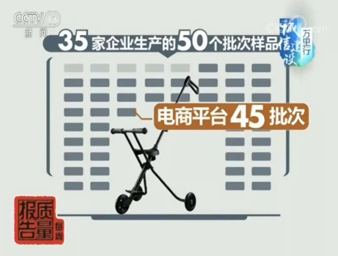 這次風(fēng)險(xiǎn)監(jiān)測(cè)共采集了35家企業(yè)生產(chǎn)的50個(gè)批次樣品,其中實(shí)體店5批次,電商平臺(tái)45批次。50批次樣品中一半為熱銷(xiāo)程度最高的“三輪遛娃神器”,采樣適用年齡重點(diǎn)覆蓋了3歲以下的兒童。