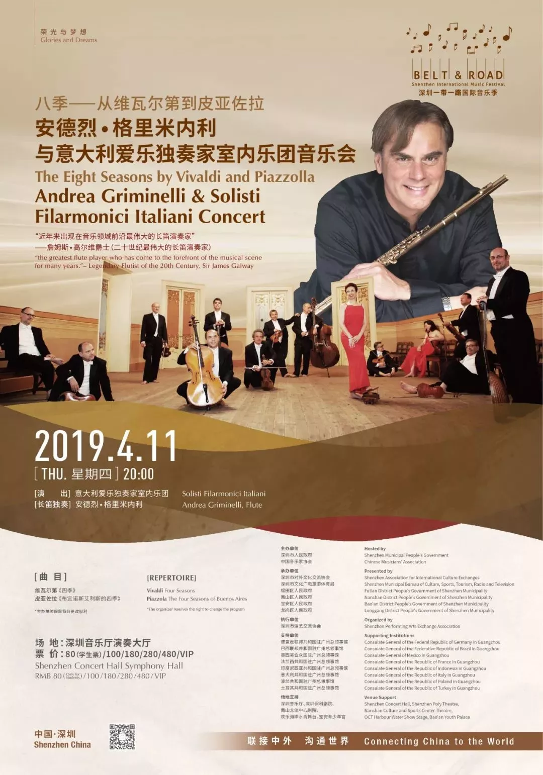 長笛名家安德烈 格里米內(nèi)利,世界三大男高音之一帕瓦羅蒂推崇的長笛大師,攜意大利愛樂獨(dú)奏家室內(nèi)樂團(tuán),首次到訪深圳,用音樂鏈接跨越時(shí)空的《四季》。