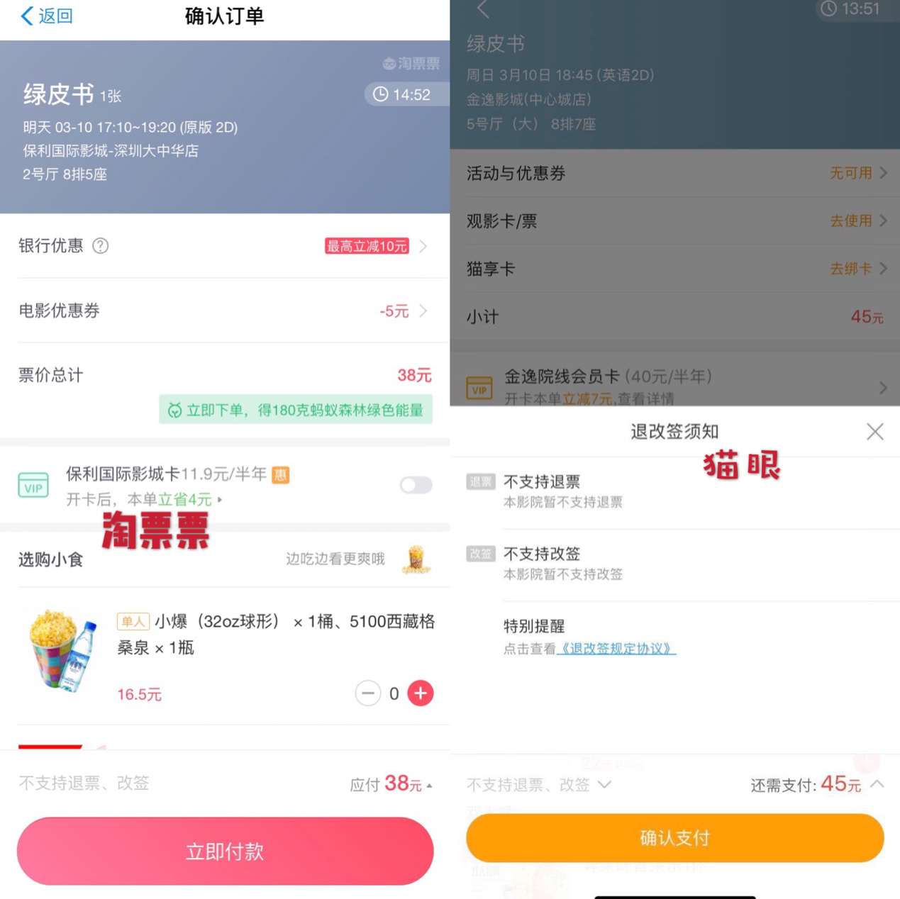 線上近半影院不支持“退改簽”