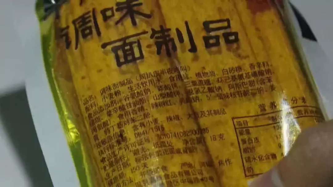 記者隨機購買了四袋“五毛錢辣條”,外包裝顯示,食品配料一欄都以面粉、小麥粉為主,而食品添加劑一覽卻都是寫滿了四五行,少的九種,多的竟然高達十五種。專家介紹,市面上生產(chǎn)的不正規(guī)辣條大多出自小作坊,著色劑濫用,甜蜜素、糖精鈉、山梨酸及鉀鹽等添加劑也超標(biāo)嚴(yán)重,所謂的“好吃”、“上癮”,只是味精、色素和食品添加劑在起作用。