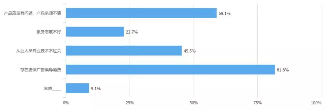 消費(fèi)者們認(rèn)為美容美發(fā)行業(yè)中存在最大的問題是虛假?gòu)V告誤導(dǎo)消費(fèi),第二則是產(chǎn)品質(zhì)量問題和產(chǎn)品來源不清。