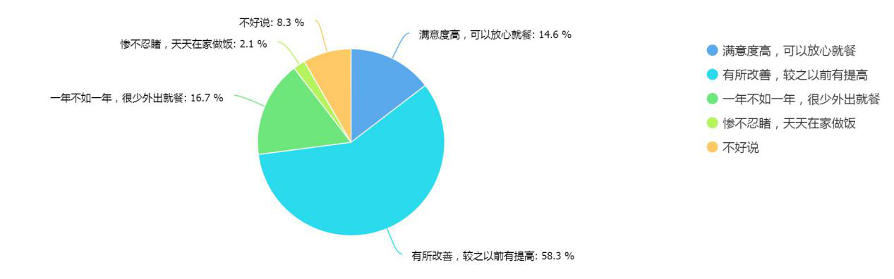 對于深圳白領非常關心的餐飲店面,接近6成受訪者認為比之前有所改善,14.6%受訪者認為可以放心就餐。