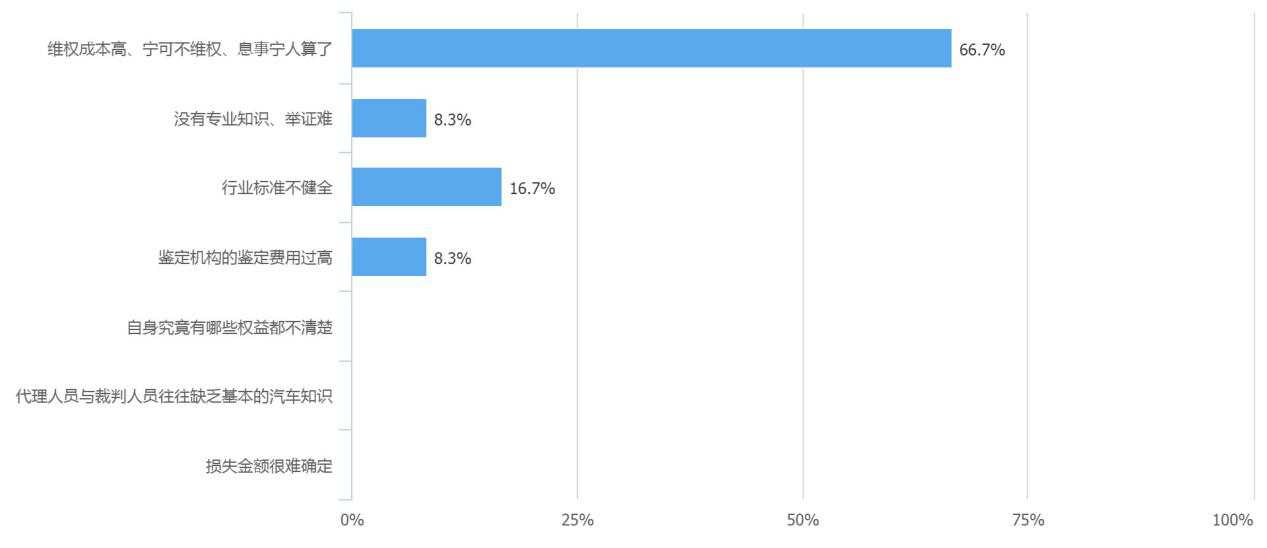 維權成本高、寧可不維權、息事寧人成為影響汽車法律維權的主要因素。