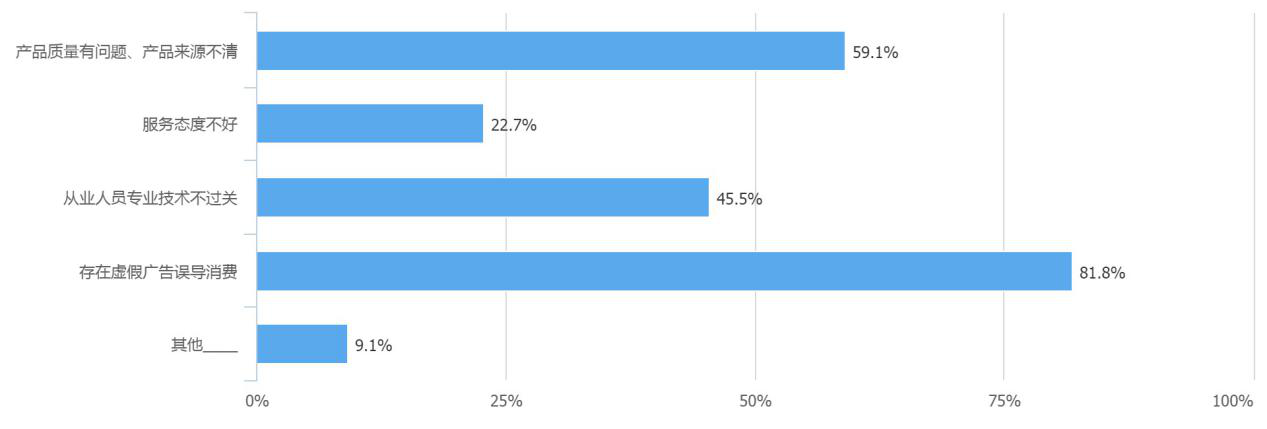 消費者們認為美容美發(fā)行業(yè)中存在最大的問題是虛假廣告誤導消費,第二則是產品質量問題和產品來源不清。(常軍平/鄭媛/姚苑/田晨夕/曹園芳/田志強/潘寶儀)