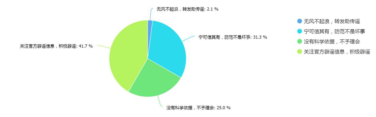 “舌尖上的謠言”長期在朋友圈里“屢辟屢傳”,其中一個重要原因是因為消費者有著極大的安全焦慮。食品謠言的存在,不僅說明了消費者在相關科學知識方面的空白,也反映出社會對食品安全的擔憂。不過經過相關部門和媒體的大力宣傳,已經有41.7%的受訪者會主動關注官方辟謠信息,積極辟謠。