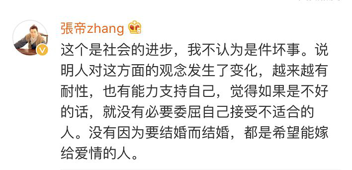 以前想著是28歲結(jié)婚,現(xiàn)在已經(jīng)無所謂了。如果是和對的人結(jié)婚,在我心里婚姻排第一,主要還是因人而決定步入婚姻。對戀愛、結(jié)婚對象最主要的標(biāo)準(zhǔn)就是價值觀要吻合。