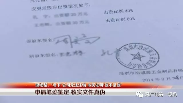 這家公司的前身為深圳市浩誠(chéng)源五金制品有限公司。變更之后,孔先生成為公司執(zhí)行董事和法定代表人,并出資20萬(wàn)。在多份文件上,還有孔先生的簽名。最終孔先生發(fā)現(xiàn),這家公司是注冊(cè)在市場(chǎng)監(jiān)督管理局鹽田分局。