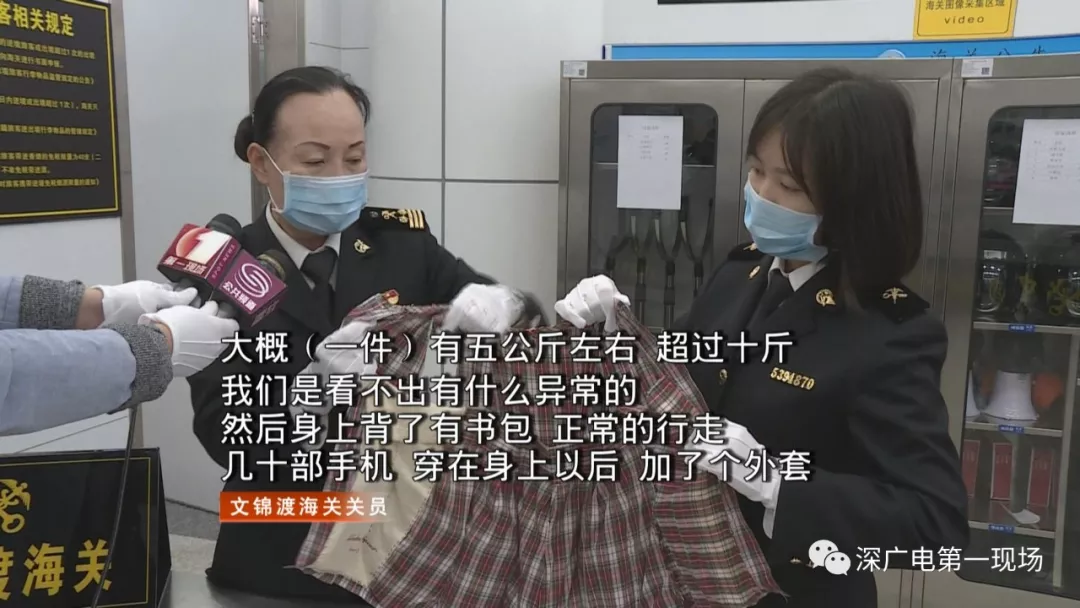 今年1月24號,一群學(xué)童從香港放學(xué)歸來,其中5名學(xué)童在文錦渡口岸入境時(shí),安全檢測門突然報(bào)警,引起了海關(guān)關(guān)員的注意,經(jīng)過檢查發(fā)現(xiàn),這五名學(xué)童身上都穿了一件特制背心,背心里面有多個(gè)夾層,每個(gè)夾層里面都放著手機(jī)、口紅、面膜等走私品。