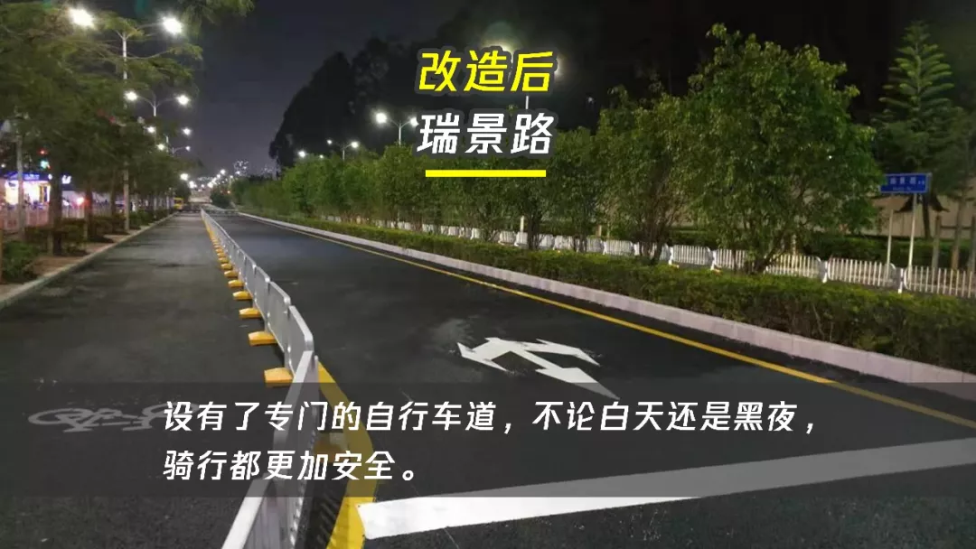 采用港式護欄在道路雙向各縮減一條車道,隔離出兩條非機動車道,保障騎行者的便捷出行,并通過在路口處的無縫連接處理,打造騎行微循環(huán),根本性解決該片區(qū)非機動車出行難題。