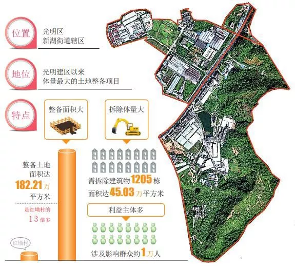 一方面,整備面積大,需整備土地面積達182.21萬平方米,是去年紅坳整村搬遷任務的13倍多,范圍包括5個居民集中居住區(qū)以及13個工業(yè)園。另一方面,拆除體量大,需拆除建筑物1205棟,面積達45.03萬平方米。