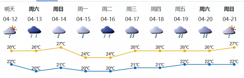 13日有陣雨,部分時(shí)間雨勢(shì)較大,氣溫20-26℃;14日有小雨到中雨,氣溫21-27℃;15-16日天氣仍不穩(wěn)定。