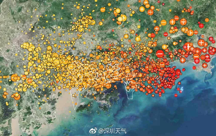 這是過(guò)去3個(gè)小時(shí)深圳及周邊城市雷電分布。