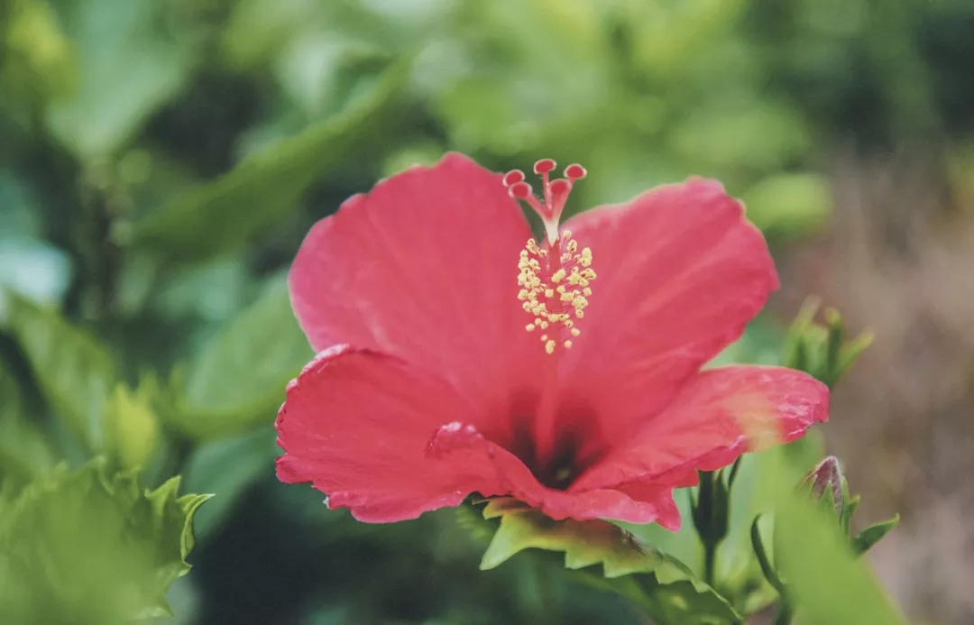 朱槿,也稱扶桑,是常見(jiàn)的觀賞性植物,在溫暖的南方,四季都有花開(kāi),紅艷艷的花朵掛在枝頭,非常惹人喜愛(ài)。因?yàn)榛ǘ涠鄶?shù)大而紅,所以大家還給它起了一個(gè)淺顯易懂的俗名——大紅花。