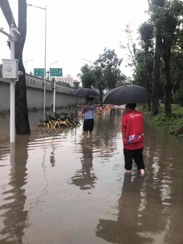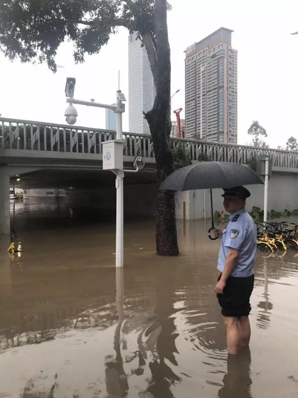 昨日上午9時(shí)許,福田區(qū)突降暴雨。福強(qiáng)派出所民警周玉鐮和蘭東階發(fā)現(xiàn)皇崗立交橋下出現(xiàn)積水,對過往車輛和行人造成隱患,立即開展疏導(dǎo)交通和幫助群眾工作,直至積水退去。