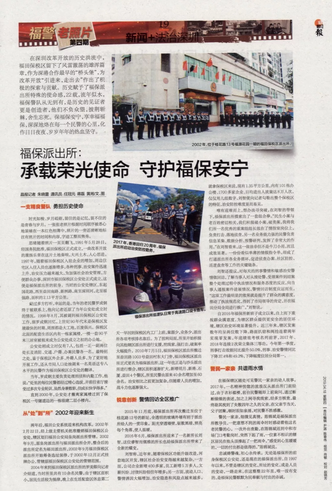 2010年7月5日,福田保稅區(qū)派出所搬遷至益田路1003號益田村東大門旁,福田保稅區(qū)派出所正式更名為福保派出所,這一年也正是與沙頭派出所進行整合,轄區(qū)面積逐漸擴大,新增明月、新港、石廈、益田4個警區(qū),所里民警由原來40余名增加至60余名。治安相比之前更加復(fù)雜,但隨著人員的增加,戰(zhàn)斗力也逐漸強大。