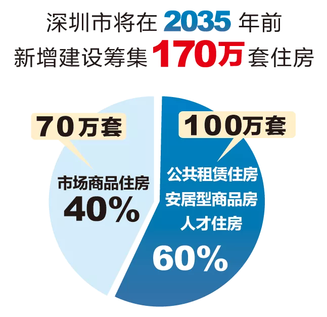 市住建局相關(guān)負責人介紹,2018年8月,市政府出臺了《關(guān)于深化住房制度改革加快建立多主體供給多渠道保障租購并舉的住房供應(yīng)與保障體系的意見》(以下簡稱“主文件”)。新時代,深圳市將針對不同收入水平的居民和專業(yè)人才等各類群體,著力構(gòu)建多層次、差異化、全覆蓋的住房供應(yīng)與保障體系,努力實現(xiàn)全體市民住有所居。“主文件”提出深圳市將在2035年前新增建設(shè)籌集170萬套住房,其中:市場商品住房70萬套,占40%左右;公租房、安居型商品房和人才住房共100萬套,占60%左右。