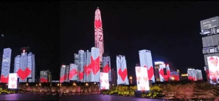 此時(shí)此刻,愛(ài)心在樓宇上升起