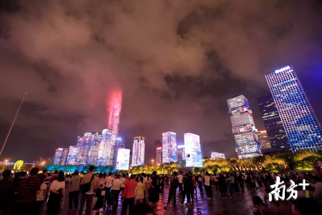 南方+客戶端2019年5月7日訊 5月1日18:40,剛剛來到深圳成為實習(xí)教師的趙同學(xué),早早在市民中心占了位置,她發(fā)了一條朋友圈:“等待市民中心燈光秀的人從眾……”50分鐘后,福田中心區(qū)的43棟樓宇閃爍起五彩斑斕的燈光,照亮了她疲憊卻興奮的臉。