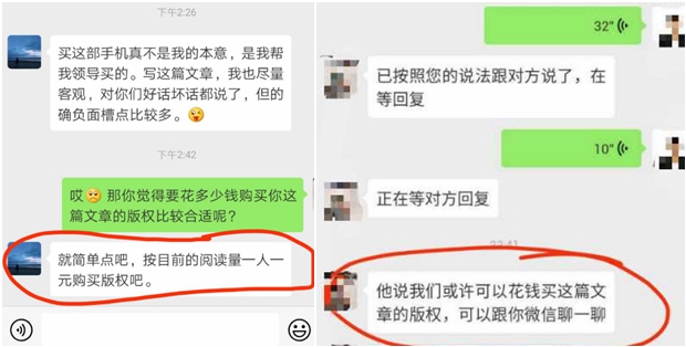 記者問:柔宇提到自媒體作者要求按閱讀量索要版權(quán)費,柔宇已報案。請問,憑微信聊天記錄頁面是否形成證據(jù)鏈,法院會采信嗎?