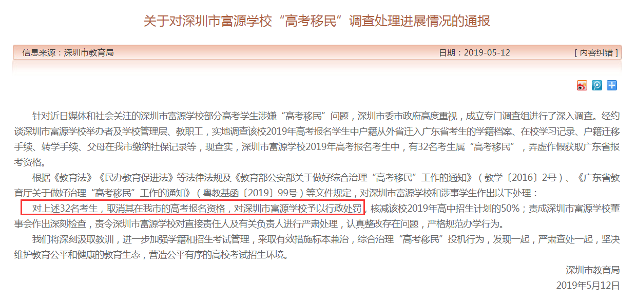 5月12日,富源學(xué)校“高考移民”事件有了處理結(jié)果