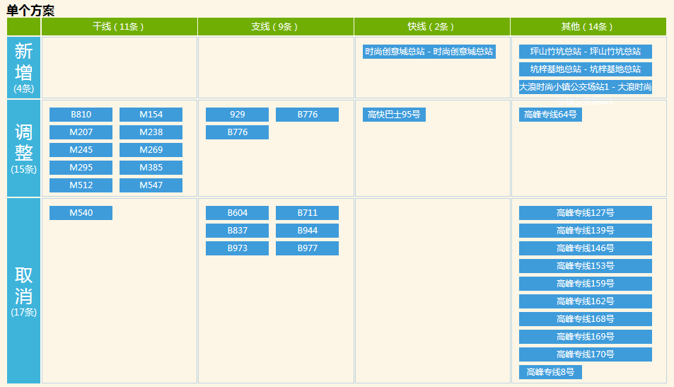 一、對坪山、光明、大浪等區(qū)域公交線網(wǎng)進行優(yōu)化改善,有效解決相關(guān)片區(qū)內(nèi)的出行改善訴求;