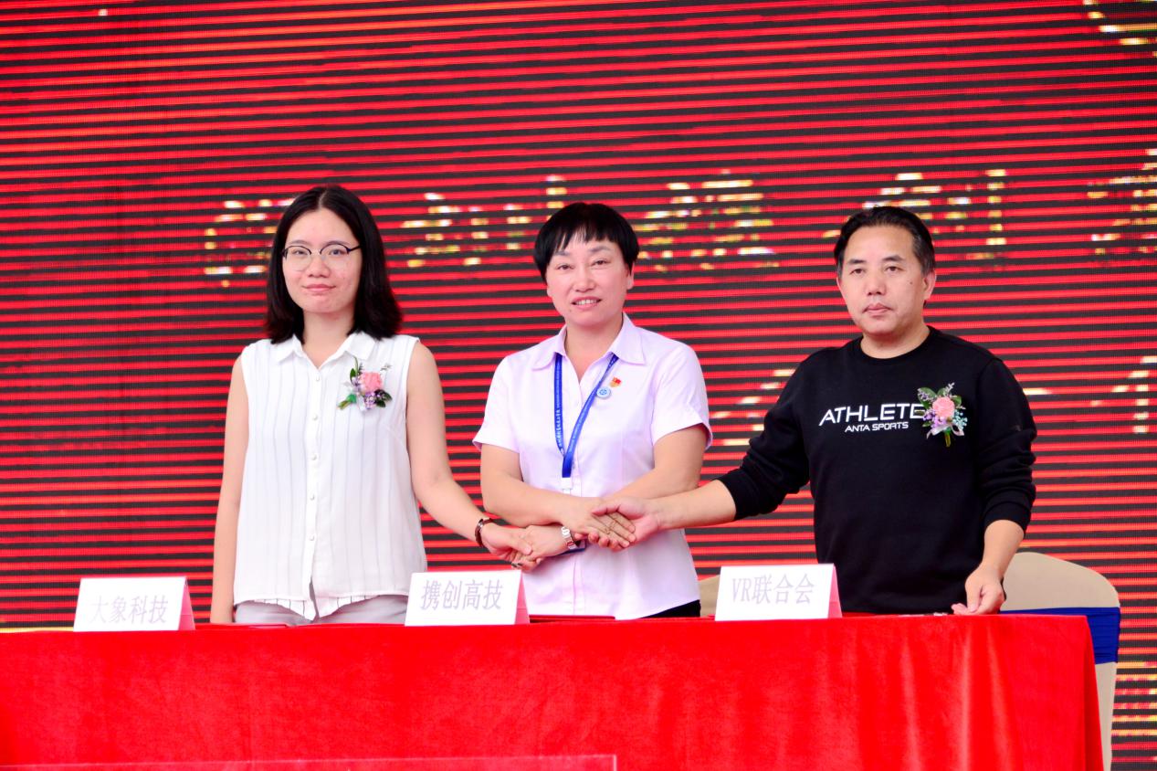 揭牌儀式上學校分別與深圳市虛擬現(xiàn)實產(chǎn)業(yè)聯(lián)合會、深圳市電子競技運動協(xié)會進行了校企合作簽約。