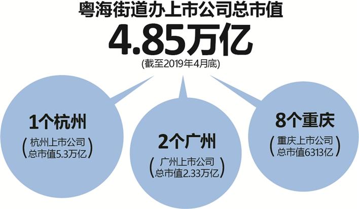 有媒體統(tǒng)計(jì)顯示,在粵海街道這個(gè)開車10分鐘就能逛一圈的“彈丸之地”,有112家公司屬于粵海街道辦,包括4月底市值超過3萬億元人民幣的騰訊控股,中國(guó)恒大、華潤(rùn)置地、騰訊音樂、邁瑞醫(yī)療、中興通訊等5家千億市值公司,以及大族激光、深信服、金蝶國(guó)際等近20家百億市值公司。截至到今年4月底,A股、H股和美股上市的深圳市粵海街道辦上市公司有多達(dá)112家,總市值達(dá)到了4.85萬億元,而杭州市全市的上市公司總市值為5.3萬億元。