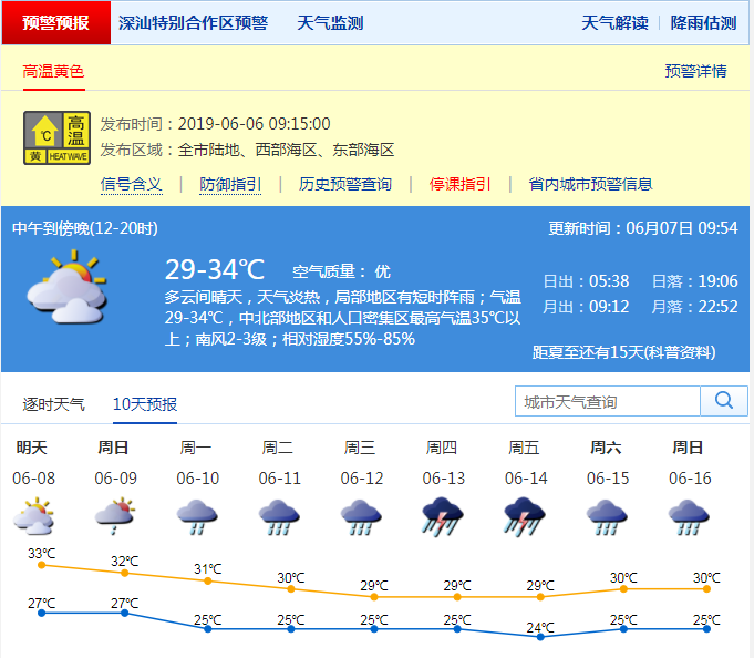 深圳今明兩天炎熱到酷熱 但10日起又有一波龍舟水要來
