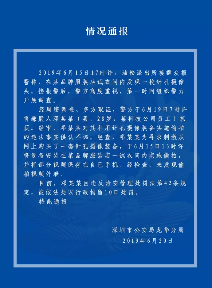 相關(guān)報道:最新!深圳優(yōu)衣庫“偷拍門”:人抓到了!