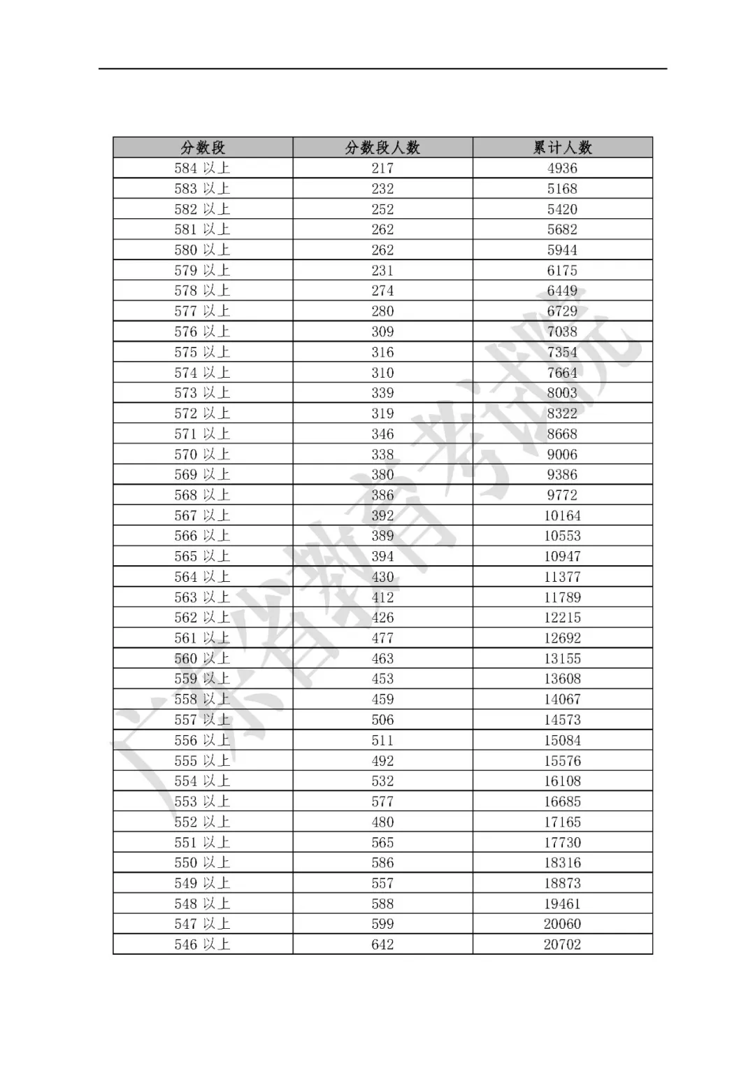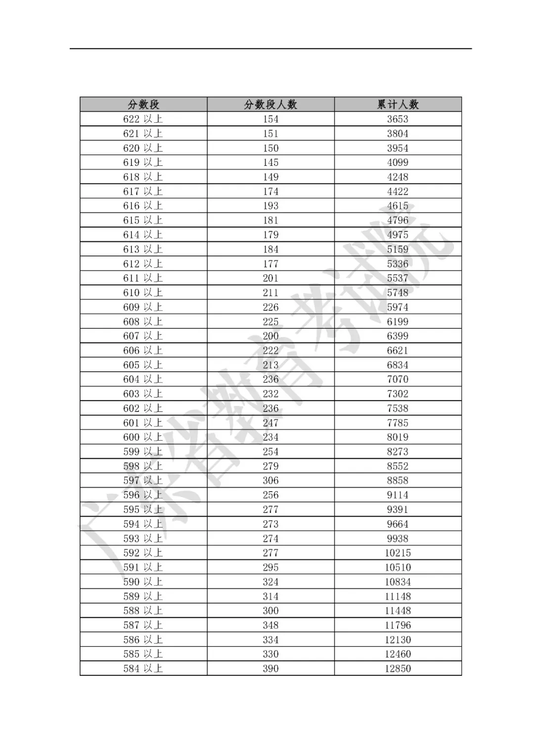 廣東高考成績各分?jǐn)?shù)段數(shù)據(jù)公布:文科655分、理科691分以上各22人
