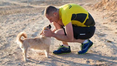 一只流浪狗突然出現(xiàn)在他腳邊,