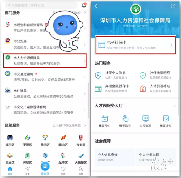 目前,深圳實體社??ǖ某挚ㄈ丝赏ㄟ^“i深圳”APP、支付寶城市服務申領電子社保卡。未來,市民還可在微信城市服務、平安一賬通、建行、銀聯(lián)等多渠道上申領電子社???。
